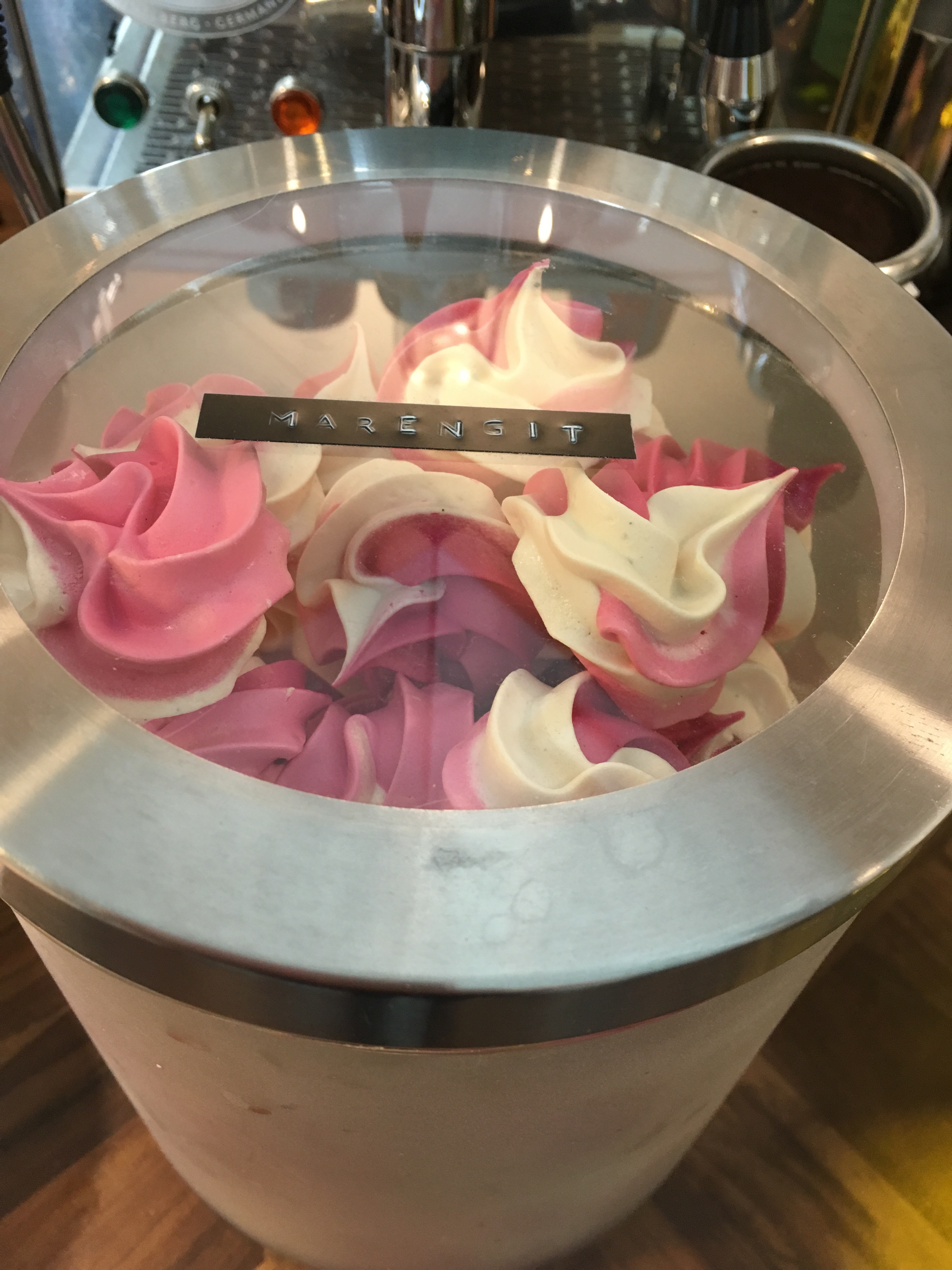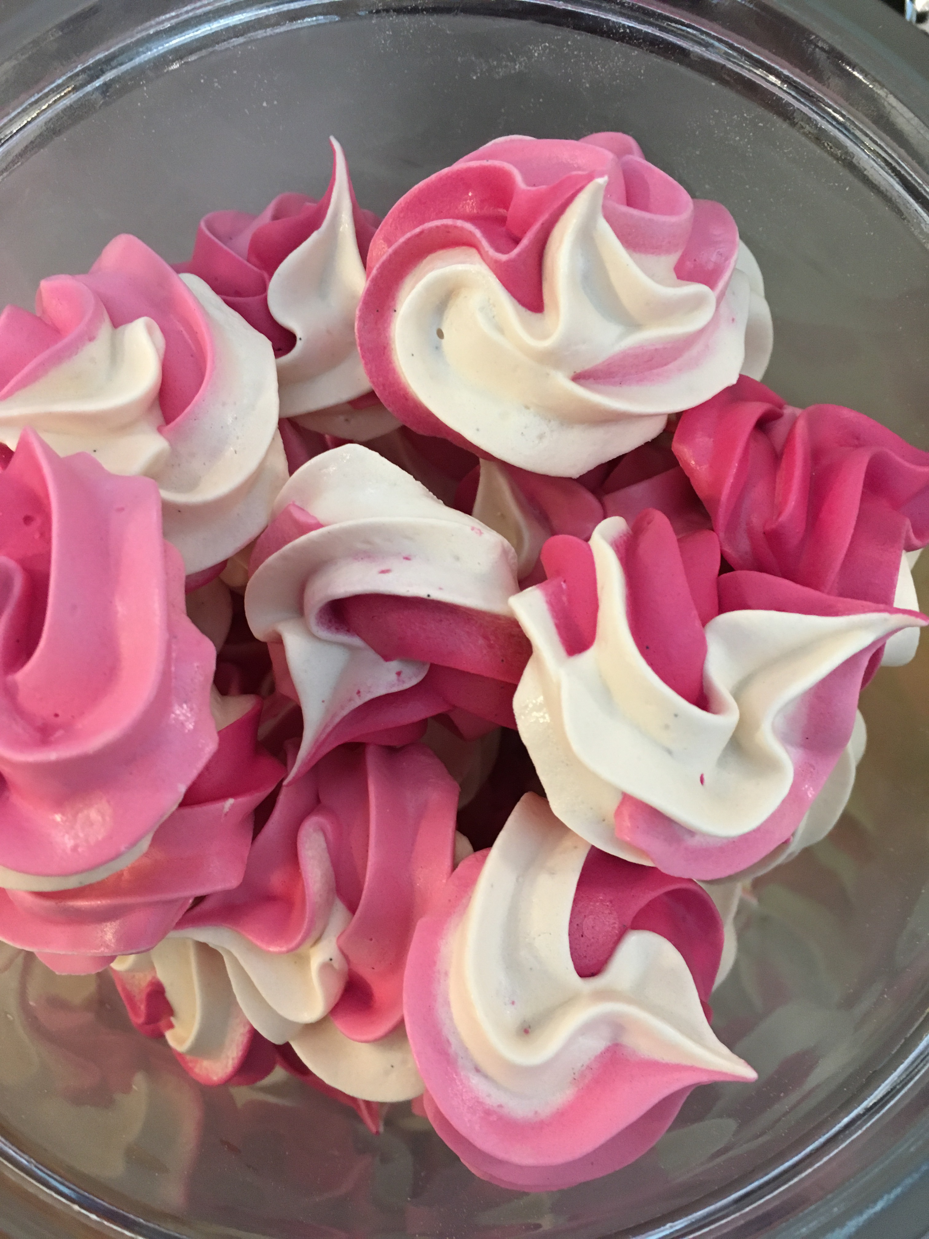 - Marenkivaahtoa voi ylivatkata! Silloin se lähtee löystymään, eikä siitä tule enää kunnollisia marenkeja. Marenkien tekeminen ei kuitenkaan ole rakettitiedettä. Vatkaus, kunnes vaahto kiiltää ja on jämäkkää, vaahtoon muodostuu huippu, joka ei taivu sivulle, kun nostat vatkaimen, sitten mahdollinen värjäys ja pursotus