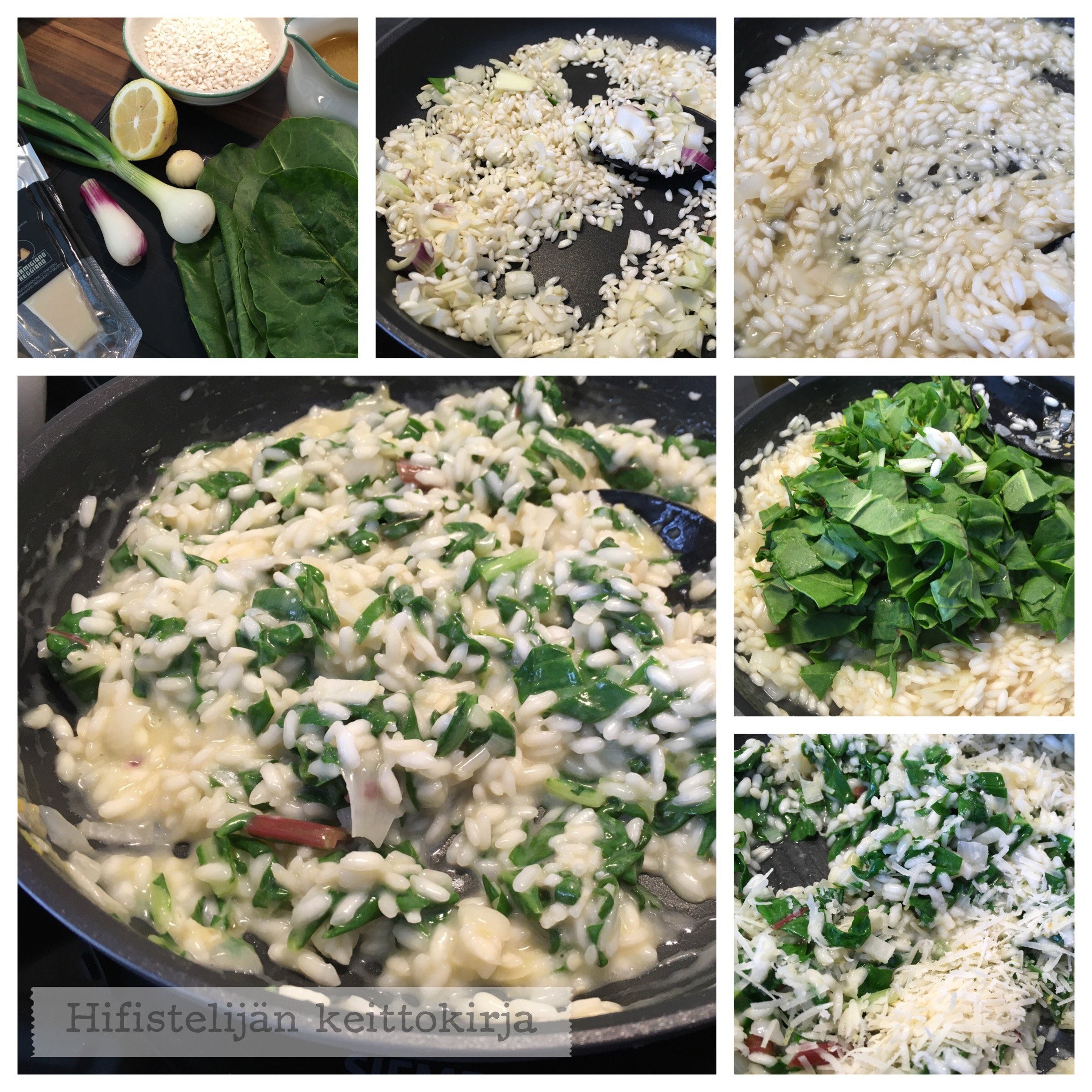 Kun on käyttänyt vain mangoldin varret aiemmin ja jääkaapissa lymyää vain lehtiä niin on aika tehdä tätä ihanaa risottoa!