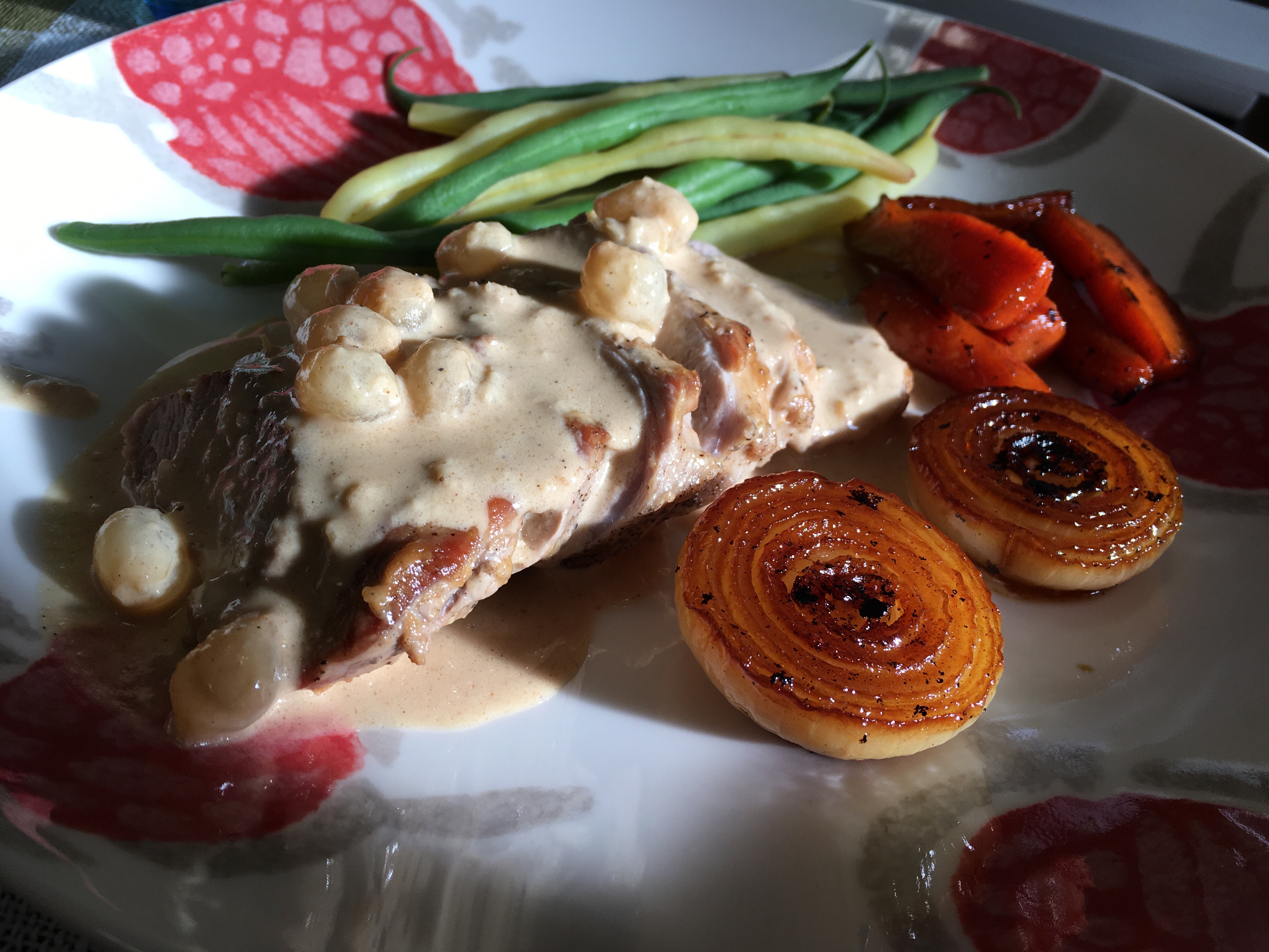 Ihana ateria, vaikka herra Zucchini hieman epäilevästi tökki papujaan ja pohti ovatko ne varmasti syötäviä. Sipulit olivat herkullisia! Vihreää salaattia, vuohenjuustoa ja pari tällaista olisi täydellinen lounas