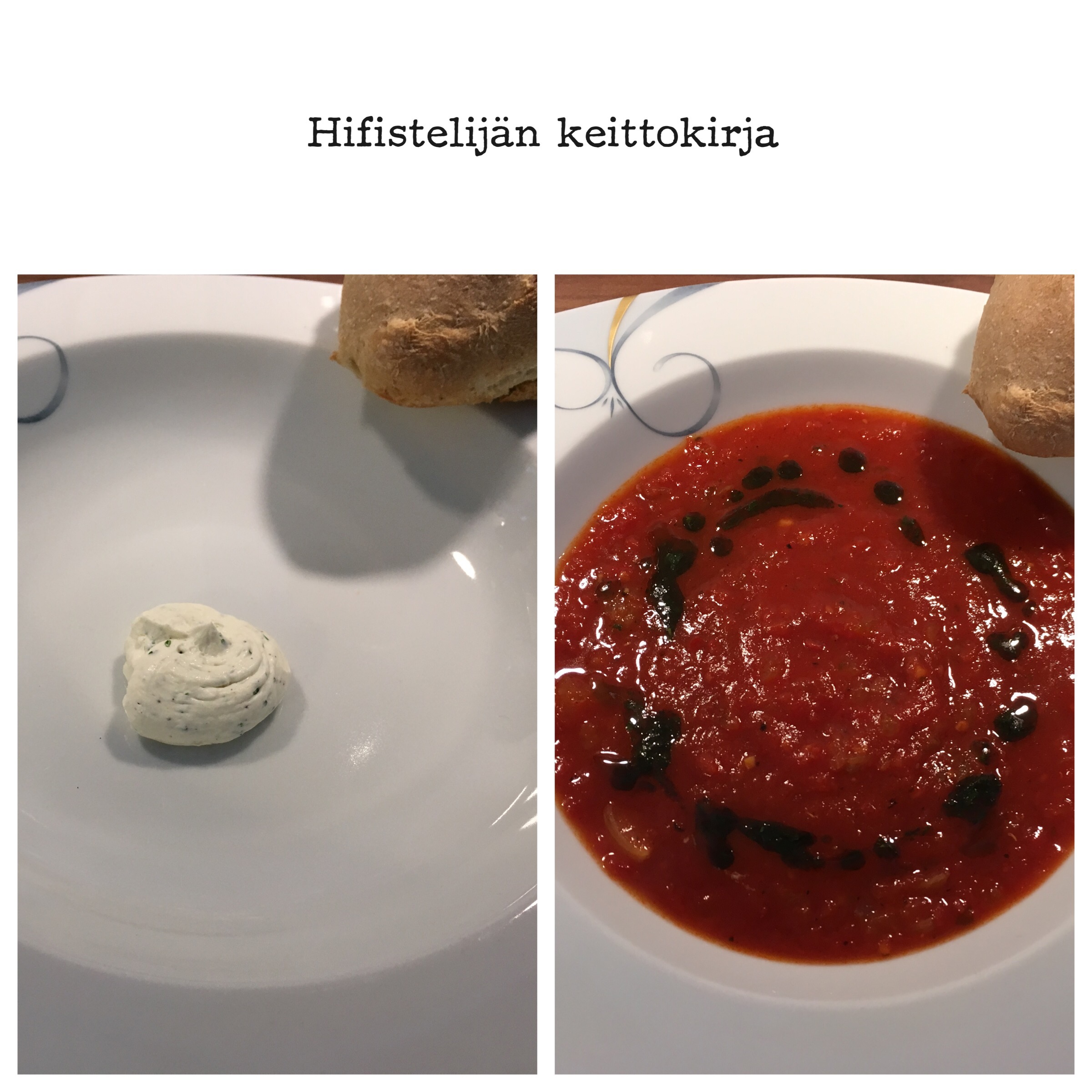 Tomaattikeitto on hyvää, mutta usein hieman tylsää ruokaa. Tuorejuustosydän ja yrttiöljy antavat kuitenkin jotain uutta keitolle