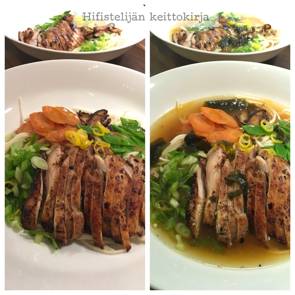 - Tähän keittoon voi upottaa mitä tahansa vihanneksia sopivasti paloiteltuna ja proteiinilähteenä käy mikä tahansa ohueksi siivutettu liha tai perinteinen pehmeäksi keitetty muna puolitettuna