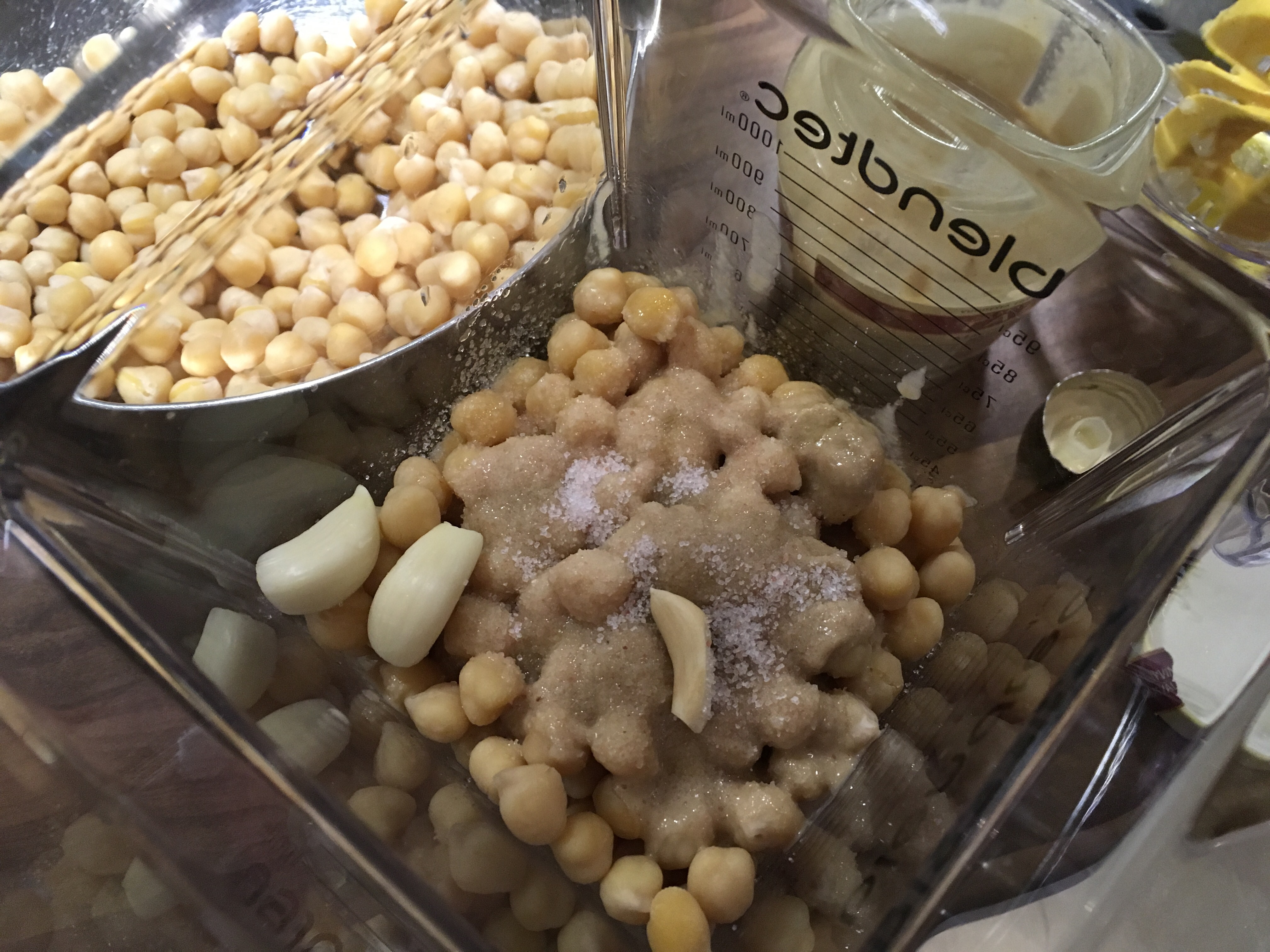 Tällä kertaa hummuksemme jäi hieman rakeiseksi, sillä Pikku Makumatkaajamme oli jo unilla, kun päätin valmistaa sitä… No, hän ei ihan hirveästi arvostanut blenderin ääntä, joten lopetin heti kun massa ole lusikoitavaa. Hyvää oli näinkin, mutta pehmismäinen rakenne on miellyttävämpi.