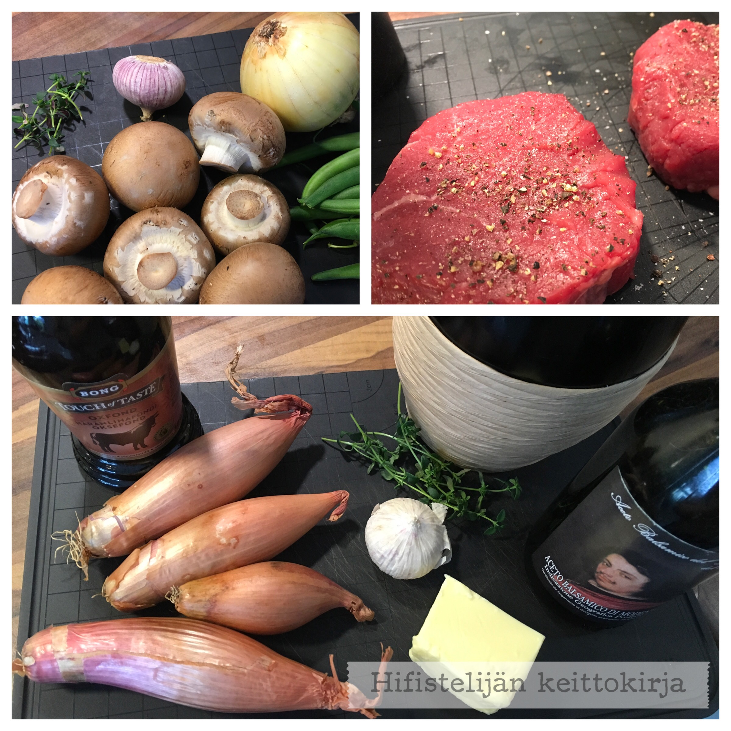 Viime vuoden Kirja ja Ruokamessut eivät menneet hukkaan sillä opin siellä kädestä pitäen niinkin yksinkertaista asiaa kuin lihan leikkaamista. Kyllähän sitä tuesi jo että aina syitä vastaan, mutta meitä muistutettiin siitä että koko lihapala, tässä kohtaa sisäfile, ei välttämättä ole saman suuntainen ja leikkaussuuntaa voi joutua kääntämään hieman. Oli suussa sulavia pihvejä ja kastike… vei kielen mennessään!