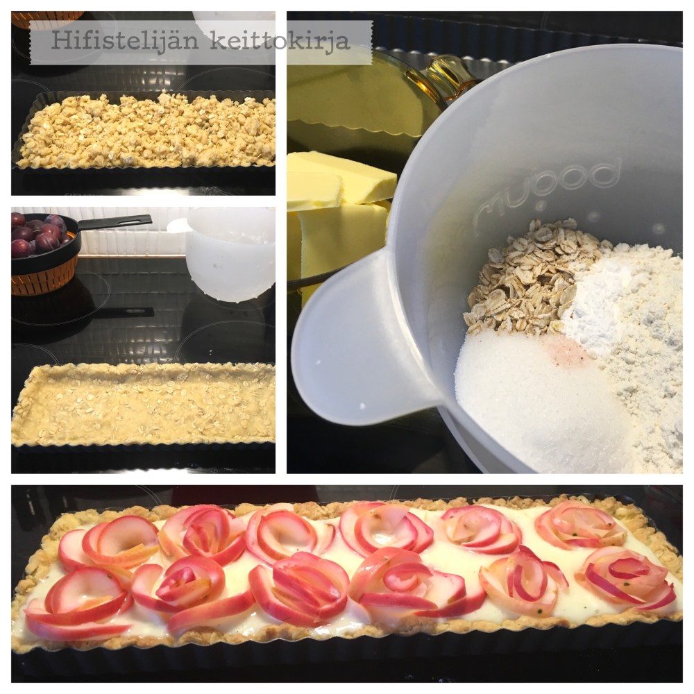 Valehtelematta maailman paras piirakkapohja! Syntyi hieman puolivahingossa, kun olin tehnyt ihanaa suolaista piirakkaa edellisenä päivänä ja päätin tehdä vastaavan pohjan makeana. En osaa sanoa ovatko isot kaurahiutaleet täysin välttämättömiä, mutta hyviä ne ainakin ovat ja niistä syntyy makoisampi kaurapuurokin