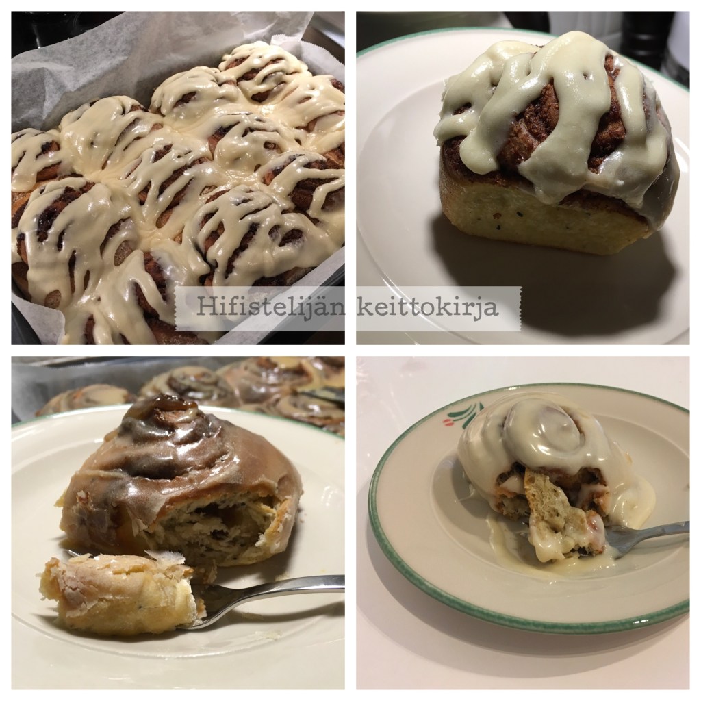 Alkuperäinen ohje on yhdistelmä useampaa amerikkalaista ohjetta, sillä suoraan omaan suuhun ei sopinut amerikkalaisten sämpylämäinen pulla ja erittäin makea kuorrute. Lopputuloksena ihana pulla joka yllättävää kyllä on jaksanut kohota laiskemmallakin juurella.